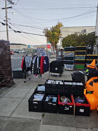 Four bins of halloween stuff plus a little extra some mixed in other places. Clothes ,assorted household goods, paintings drawings, all sorts of goodies