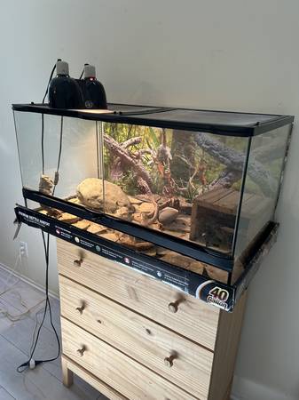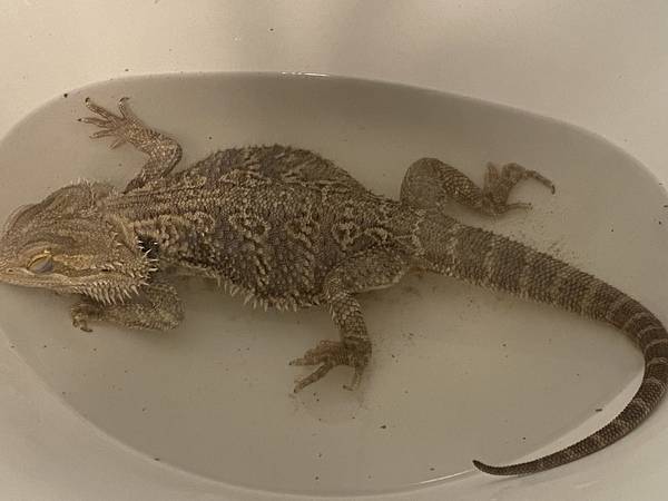 Healthy 6-year-old bearded dragon. Well-cared for and comfortable being held by children. Has always been fed omnivore diet, mix of greens, fruit and occasional crickets or meal worms. Rehoming fee...