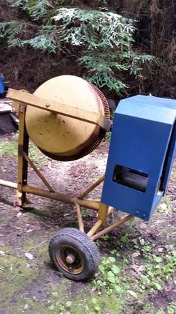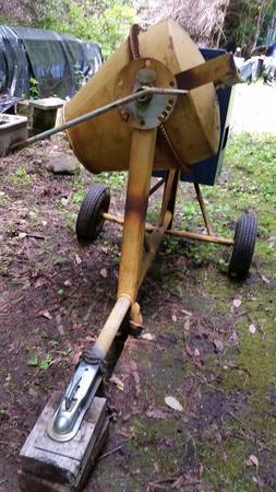 Large mixer for mortar or cement needs a gas engine. Pick one up at Harbor freight, they are about 100 to 150 for a 2 to 5 hp. Electric motor can be used also.