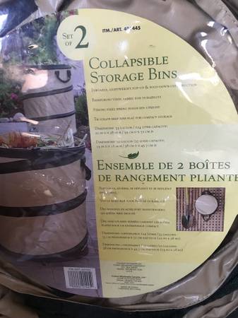 Hi, I'm having a Moving Sale - everything is priced to sell, here's what's available: - Collapsible Storage Bins: Set of 2 [33gal & 10gal] (note pics. for details) Local pickup only. Feel free...