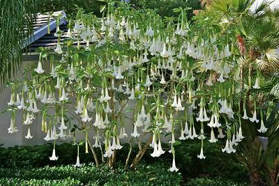 Their large, very fragrant flowers give them their common name of angel's trumpets.
