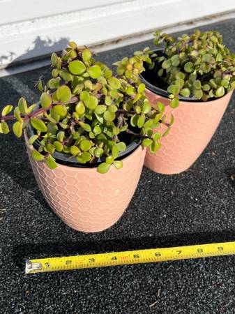 Pair of matching ceramic 5" flower pots/planters with succulents planted in them in unattached plastic pots (get the blue ones or the pink ones as the pots) - $18 for two