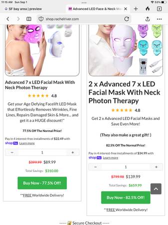 Has different wave lengths for specific needs. Included neck mask too. No haggling very low price. I can attest it works well. More info on Rachelriver.com. Not sold in stores.