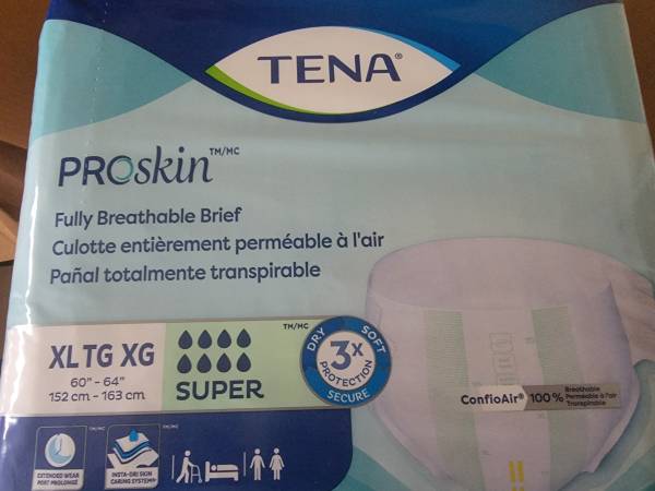 I'm selling a box of 4 packs of Tena Proskin Brief - Super - XL (15 briefs per pack) => 60 briefs total I'm selling the entire lot, not the individual pack.