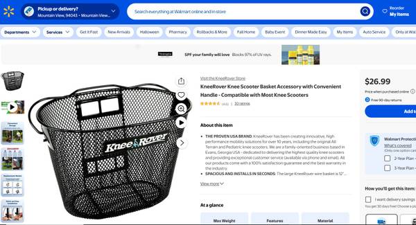 KneeRover Knee Scooter Basket Accessory with Convenient Handle - Compatible with Most Knee Scooters