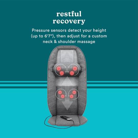 * Customizable Massage Modes: This cushion features two shiatsu massage speeds with deep-kneading nodes that travel up and down your back, and three seat vibration massage speeds to target stiff glute muscles. The SmartScan technology detects your height up to 6'7" for a personalized neck and shoulder massage.