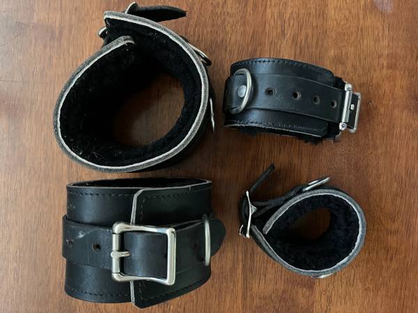 Thick premium leather/fleece restraints. Like new! Clean and scent free No response without text/phone If it's posted, it's available Map location is accurate