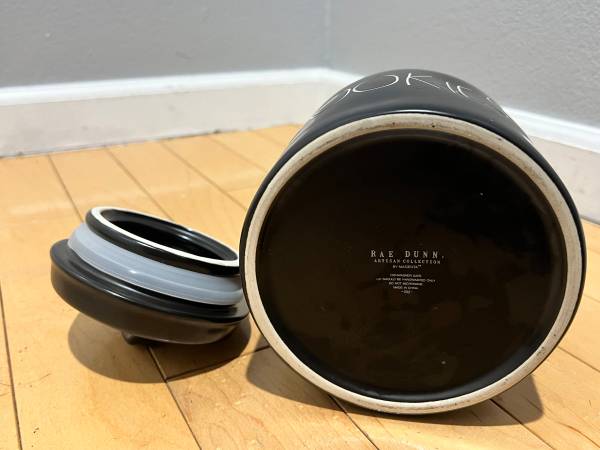 This Rae Dunn Cookie Canister Cookie Jar - Artisan Collection By Magenta is like new. Beautiful classic high quality cookie jar. A great place to store your freshly baked cookies but also a beautiful decor piece to display in you kitchen or dining room.