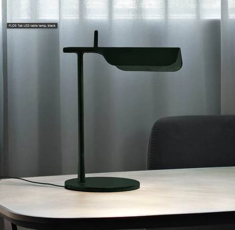 Black LED table lamp by FLOS. This lamp currently sells for $475. Makes a fantastic desk lamp. The shade rotates. Reminiscent of the old British Library lamps. In immaculate, as new condition. More details here: * https://www.lights.ie/p/flos-tab-t-led-table-lamp-matt-dark-green-3510656.html