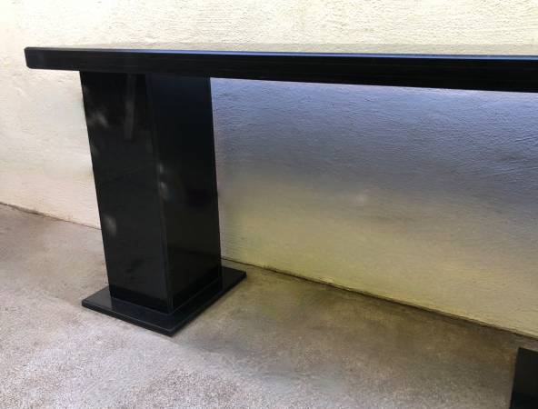 For sale I have a high end unique ALL SOLID ABSOLUTE BLACK GRANITE TABLE that can be used for a varity of uses like sofa table, entry table, Bar indoor / outdoor table, outdoor kitchen counter or along side upright hot tub where ever your imagination goes it just might look great. Can be hauled in 5 separate pieces for easy carry out. MUST bring your own helper to lift and carry out, we have no stairs and easy access to your vehicle.