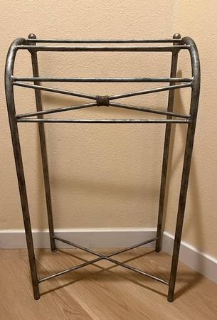 Very sturdy and heavy vintage garment rack to keep your clothes or towels neat and ready. Four rails. Height: 34" Depth: 10 1/2" Width: 19 1/4"