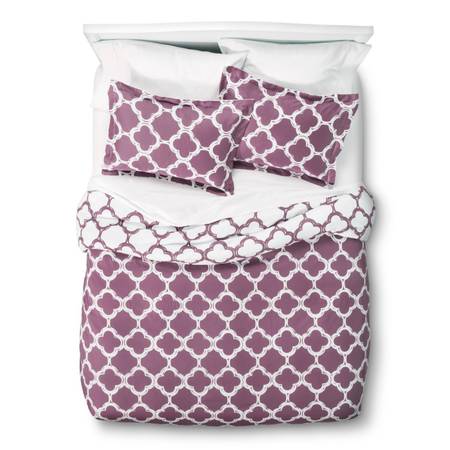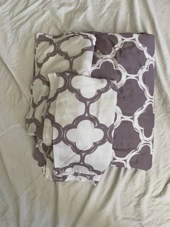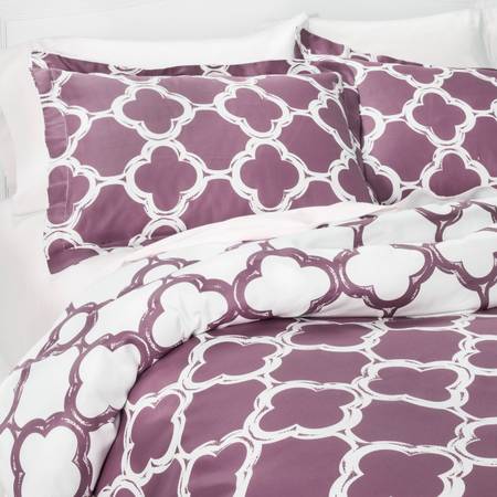 Lilac /lavendar. Trellis patern. Reversible. Button closure. 60% cotton. 40% polyester. Machine wash cold, gentle. Duvet not included. Cash or Venmo only. Please include a few proposed times to meet...