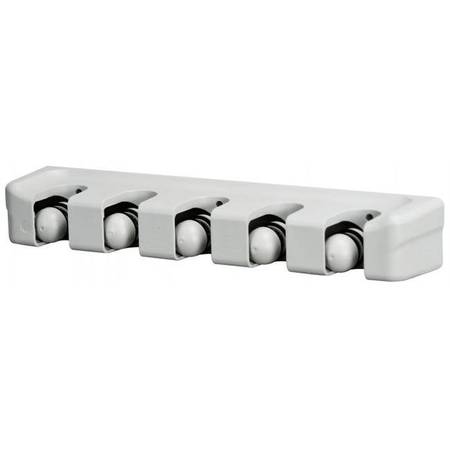 Simply insert handle into a slot and the gravity controlled rolling ball automatically adjusts to the handle's thickness and holds it securely