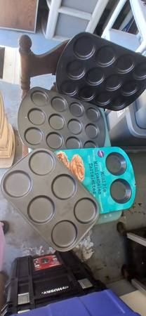 I HAVE 4 TART AND DOUGHNUT BAKING PANS SEE PICS AND MESSAGE ME SELLING ALL 4 PANS FOR ONLY $8.00BUCKS