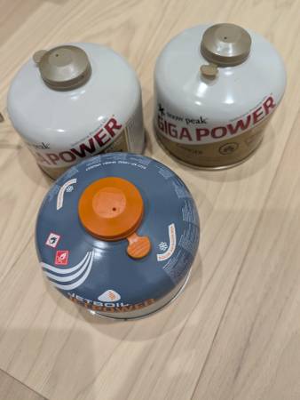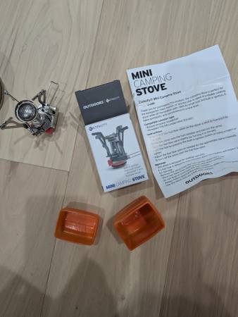 - Etekcity ultra light stove with 2 full fuel and 1 used cans and 1 ultra light cooking utensil and fork. Link: https://www.outdoorgearlab.com/reviews/camping-and-hiking/backpacking-stove/etekcity-ultralight