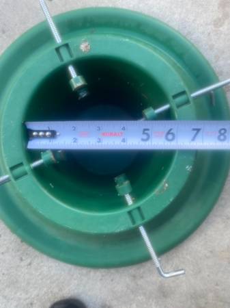 LIKE NEW CHRISTMAS TREE STAND 6 INCH MAX BASE ADJUSTABLE SIZE 6 INCHES OR LESS IN GOOD WORKING CONDITION MUST SEE SEE ALL THE PICTURES CONTACT TOM AT