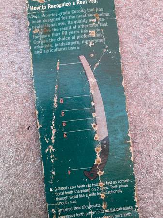 LIKE NEW CORONA CURVED PROFESSIONAL 13 INCH RAZOR TOOTH PRUNING SAW BLADE MODEL RS7120 IN GOOD WORKING CONDITION MUST SEE SEE ALL THE PICTURES CONTACT TOM AT