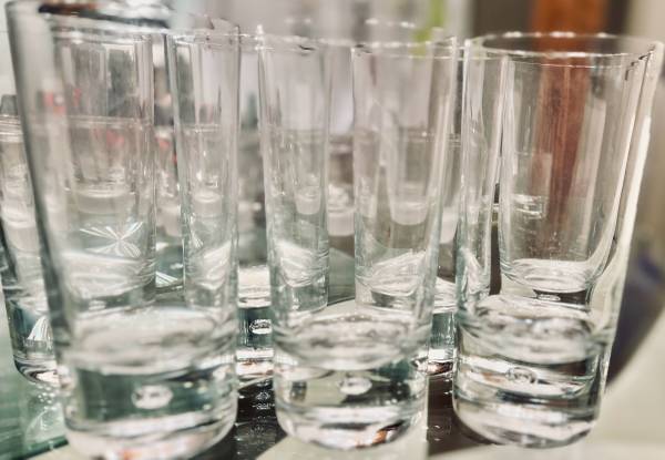 BUBBLEBASE DOF TALL TUMBLERS! Classic clean and handsome- Lawrence Welk Would Be Happy With These Bubbles. This 13 Oz. Mouth Blown High Ball Glass Is A Sleek And Gorgeous Beauty That Holds Your Favorite Iced Tea or other Beverage. Her Clean Line Design Is Awesome!