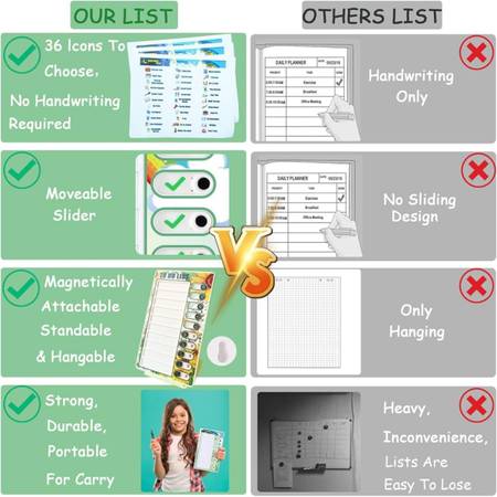 ENHANCED INTERACTIVE PROGRESS MONITORING: Transform task management for kids with our Magnetic Routine Chart for Kids. Unlike traditional paper charts, this Sliding Chore Board lets kids mark their accomplishments using interactive buttons. It’s a fun and effective way to encourage task completion while fostering independence. Perfect for Bedtime Routine Charts for Toddlers or Morning Routine Charts for Kids.