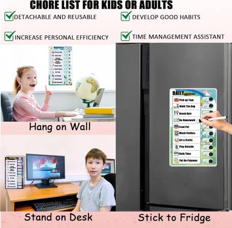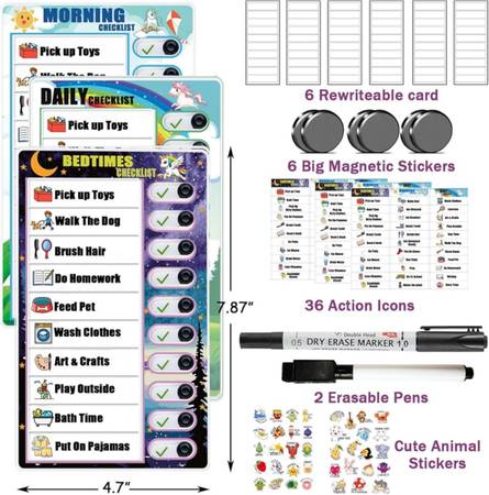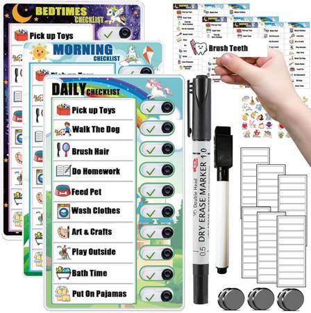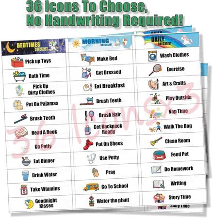 ACCELERATE HABIT FORMATION:Empower your child to form lasting habits with this Reusable Routine Chart for Kids. Turning tasks into rewarding actions, it simplifies to-do lists and motivates kids to succeed. Whether used as a Reward Chart for Kids or an ADHD Routine Tool, this Chore Board helps kids stay organized and builds confidence in their daily routines.