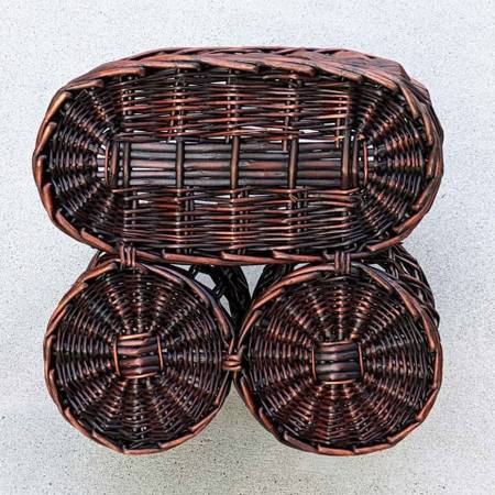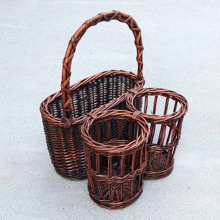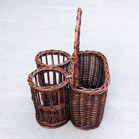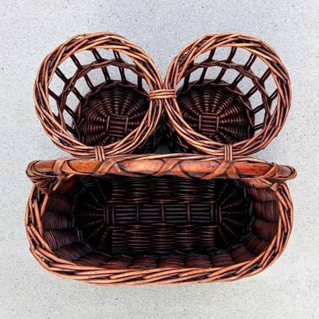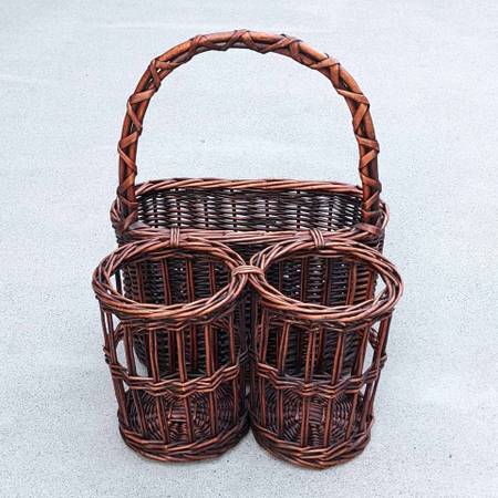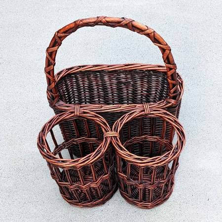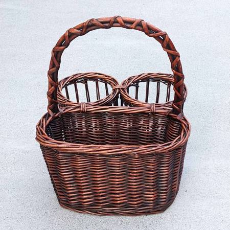 Pre-owned and barely used farmhouse style triple compartment picnic carrier. In excellent cosmetic and working condition - like new!