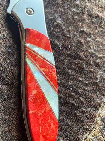 Gorgeous unused Kershaw USA made corral and mother of pearl handle assisted open knife.