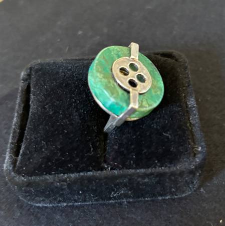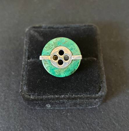 Malachite ring set with sterling silver. Malachite slightly larger than a U.S. penny.
