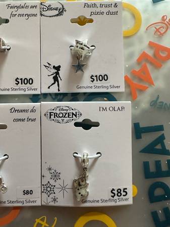 Disney Genuine Sterling Silver charms at least 50% off retail. Priced as follows: