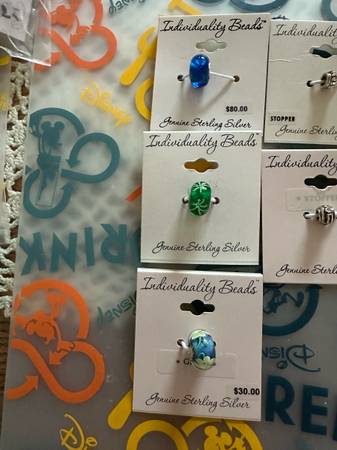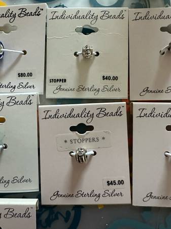 Individuality beads, glass, stoppers, small silver and large silver bead charms. Priced as follows: