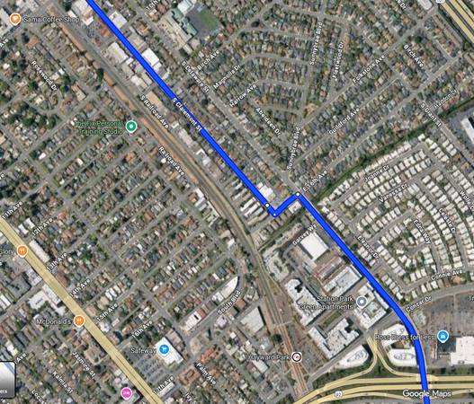Key "ring" kinda looks like a large paperclip. Has a house key, two old car keys, two or three bike lock keys, and a few other things. Can provide description of unique features. I was riding my bike along this path(slight deviation in the first image, couldn't get google maps to do the exact route) yesterday and unfortunately found out late last night that my bag has a hole in the bottom. You can keep the key ring and unique parts dangling off it if you want them, I just want the keys back.