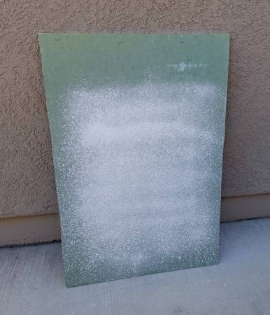 1/2" Sheetrock repair panel. Remaining from a project. Water resistant green board with a slight spray texture.