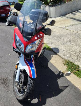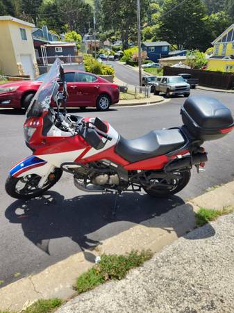Ever dream of hitting the open road like a true superhero? My 2007 Suzuki V-Strom 650 is decked out in bold red, white, and blue β Captain America colors.
