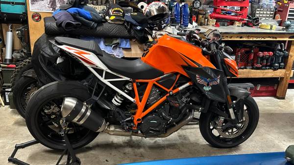 Selling my 2015 KTM Super Duke R 1290. Awesome bike! I've had it for 6 years. It has 17k miles on it. Runs perfect. Used for commuting. It's been garaged the entire time, on a stand. Its has the Rottweiler block plates installed, and the Rottweiler cat delete, and healtech quick shifter kit. Carbon fiber front and rear fenders, and carbon fiber air scoops.