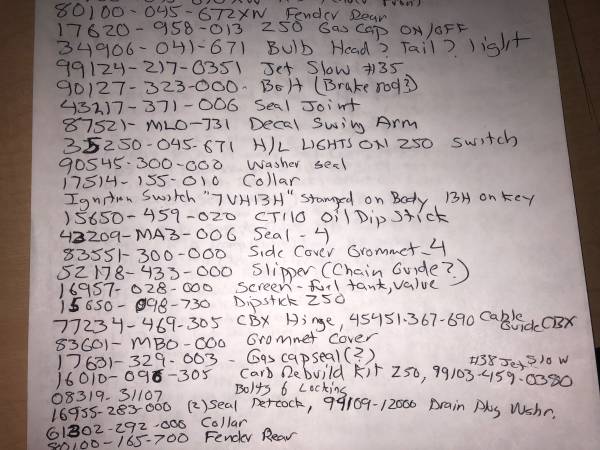Please respond with your phone number for a reply I will not email or text replies, prices are firm. Thank you See parts list pictures for parts availability. C100 C102 50 Honda Mini Trail MiniTrail...