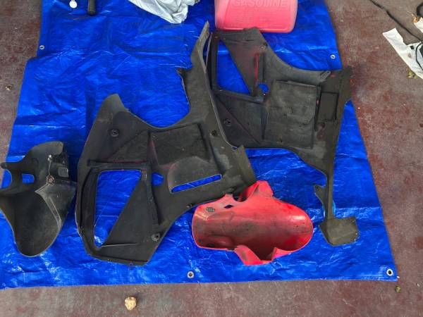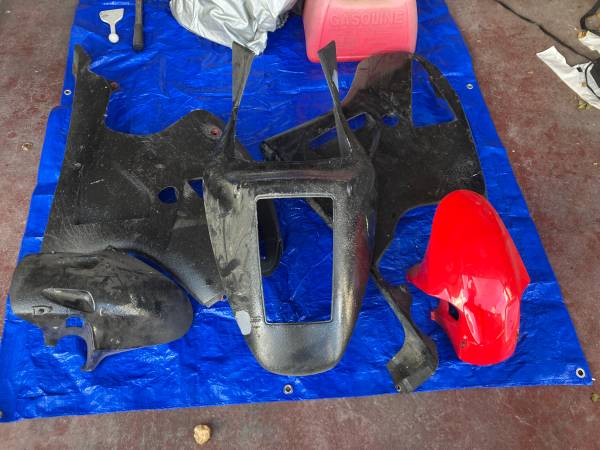 These are in rough shape. But side and rear cowl have tabs in tack, except one on right upper fairing. Completely can be sanded and painted. Front fenders have broken tabs those are free with purchase. I believe to be OEM, very heavy duty. not like china aftermarket.