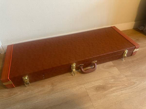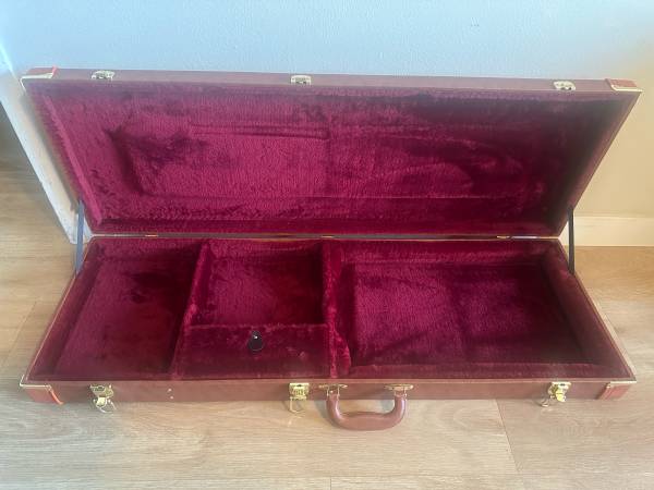 No instrument Leather Stratocaster case , also fits Ibanez, telecasters and other models. Gold hardware. Very clean velvet interior, no rips or tears. Pick up in Daly City Cash Zelle Venmo ok Open...