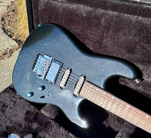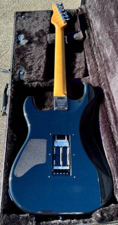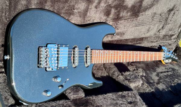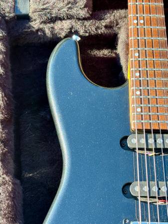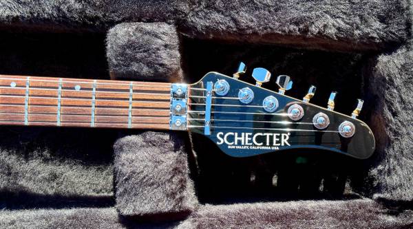 Schecter USA California Custom Pro. Fantastic work from the Schecter custom shop, right up there with my Suhr and Tom Andersons. Alder body, maple neck, rosewood board. Beautiful black pearl finish. Fretwork is great.