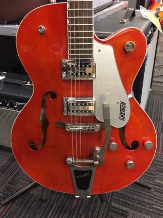 Gretsch model# Single cutaway, Two single coil Gretsch pickups. Bigsby whammy, hard shell case, Strap.