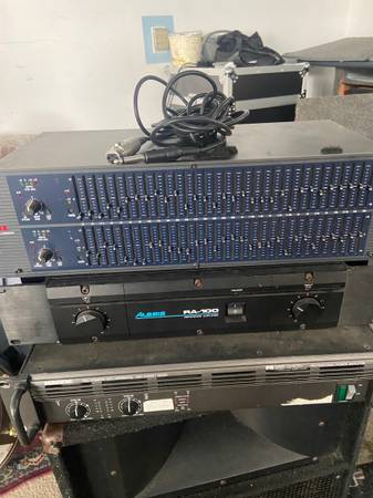 For sale several things that I don't use. 1pair power amp Mackie FR series. $180 each. Alesis RA amp. $80. DBX 1231 Dual Chanel EQ. $150. Alesis processor effects midiverde4 $100. Yamaha12” speakers monitor passive $80.