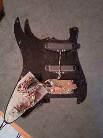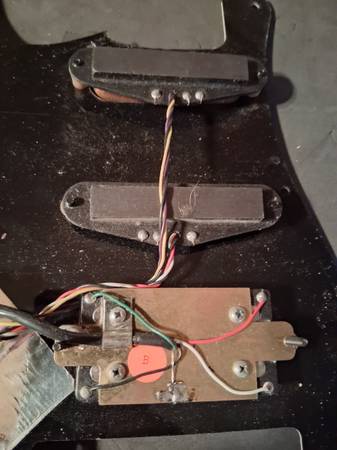 Pickups Neck 4.9 Middle 4.7 Bridge 9.7 Bridge has a coil splitter on the tone knob 5 way switch CTS volume pot Pickguard is scratched up. Replace no big deal 11 hole.