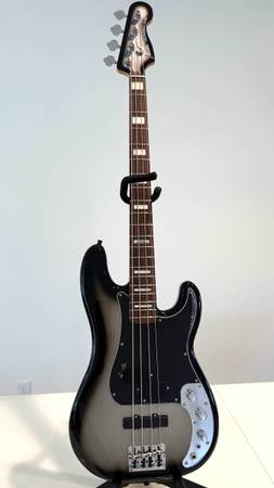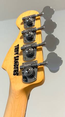 Up for sale is an Excellent to Like New condition Fender Troy Sanders signature Precision Bass in Silverburst. This was purchased in 2024 from Brian’s Guitars, and the original $1499 listing for this serial number can be found online if you search “TS00206 Fender Brian”. Pickguard plastic film still affixed, and I’ve added Black Schaller S-Locks, which will be included with the full strap lock hardware.