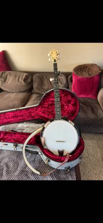 After heavy consideration back and forth in my mind for a couple months on this, I've decided to put my banjo up for sale, especially since I need the extra money for when my girlfriend moved in. I will not accept lowballs. This comes with a gorgeous loud golden tone banjo (closed back, model Model CC-100R) a beautiful hard shell velvet case with a storage compartment (with a matching storage pouch), real wool strap, set of metal picks, replacement strings pack, capo, and a instrument/guitar stand to display it on.