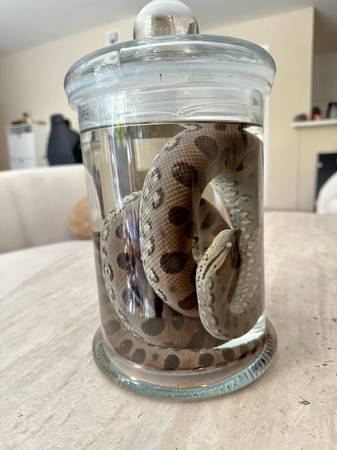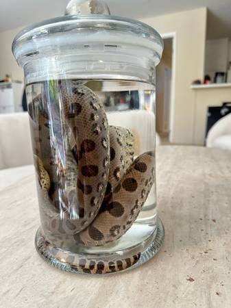 3 years old female Green anaconda preserved in alcohol $200 Key words: Reptile cage, vivarium, snake tank, gecko tank, bioactive terrarium, heating lamp, UVB setup Search tags: reptile tank,...