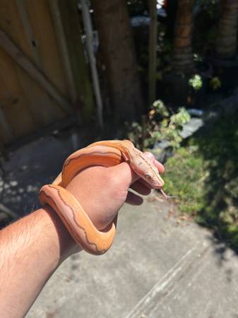 Baby female orange glow motley sunfire retic eating live small rats it’s healthy n eating good $500 about 3 ft long born on 5/3/25