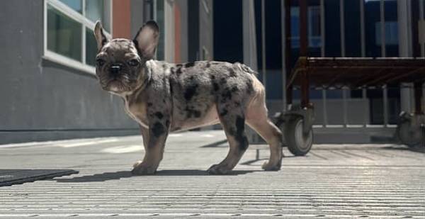 female six month old merle frenchie only to a good home. She is not to be used for breeding. She’s good with kids adult other dogs and other pets working on potty training has a rabies vaccine. only asking a rehome fee to make sure she’s going to a family who can afford her.