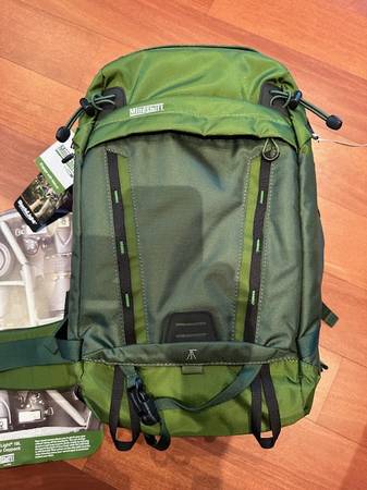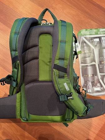Never used, as new. Woodland Green. Very high quality photography backpack, gets great reviews. Includes rain cover, dividers, all standard straps. Cash or PayPal. Price is firm. Thanks for looking.