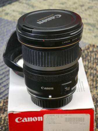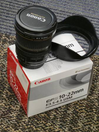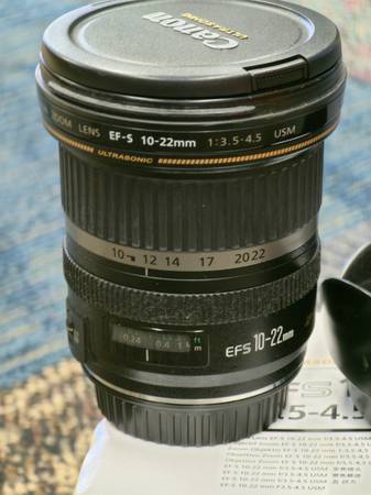 Canon EFS 10-22 f3.5-4.5 USM lens and hood.