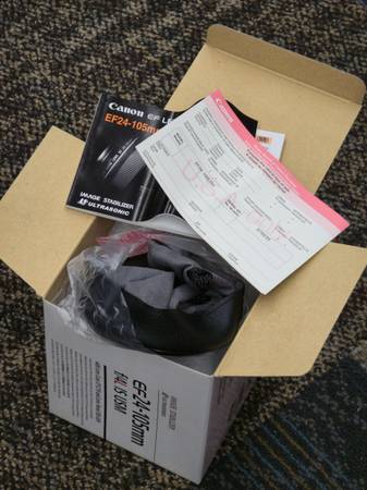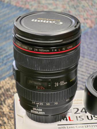 Canon EF 24-105 f4.0 IS USM L lens and hood.