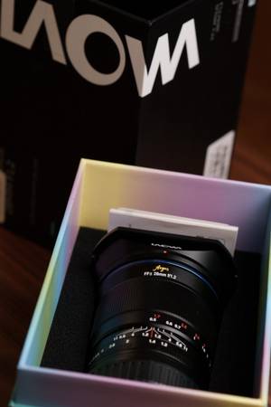 Brand new laowa 28mm 1.2 in box with all accessories. I bought this lens for my canon R set up but never ended up using it.