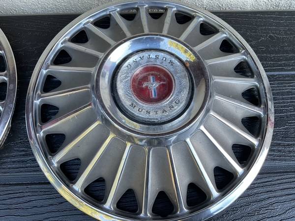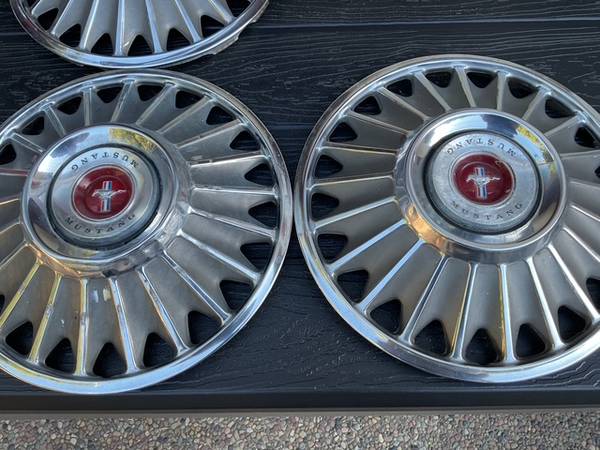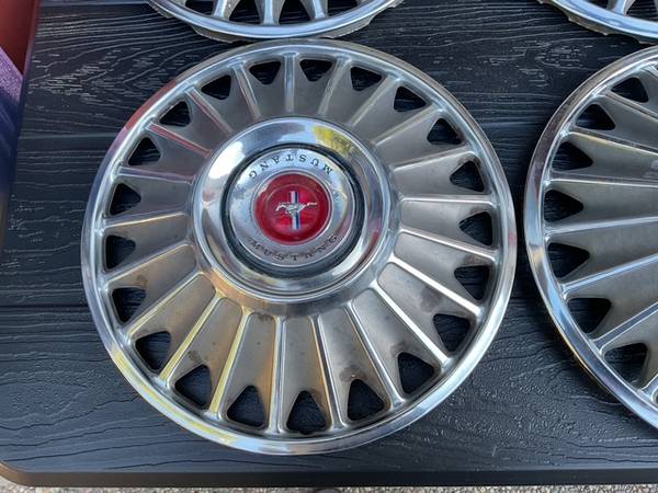 1967 Mustang Hub Caps. Very fair daily driver condition. 4 are good, (5th center not as clear last picture).